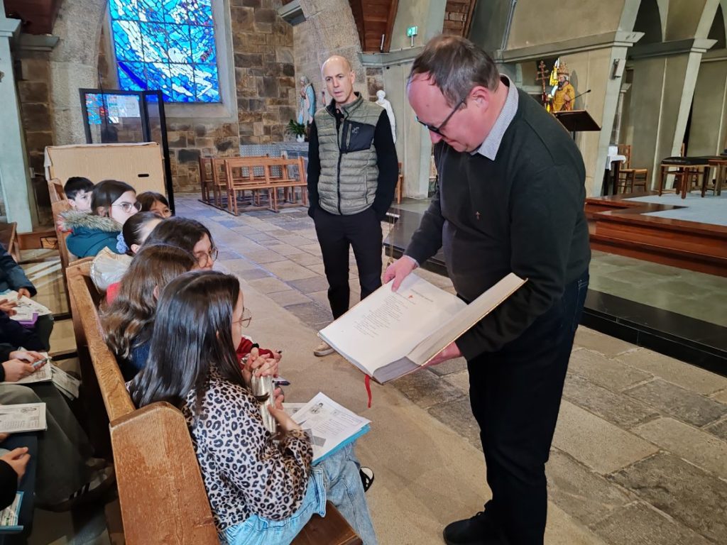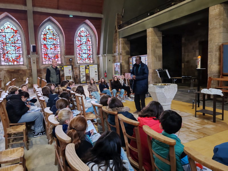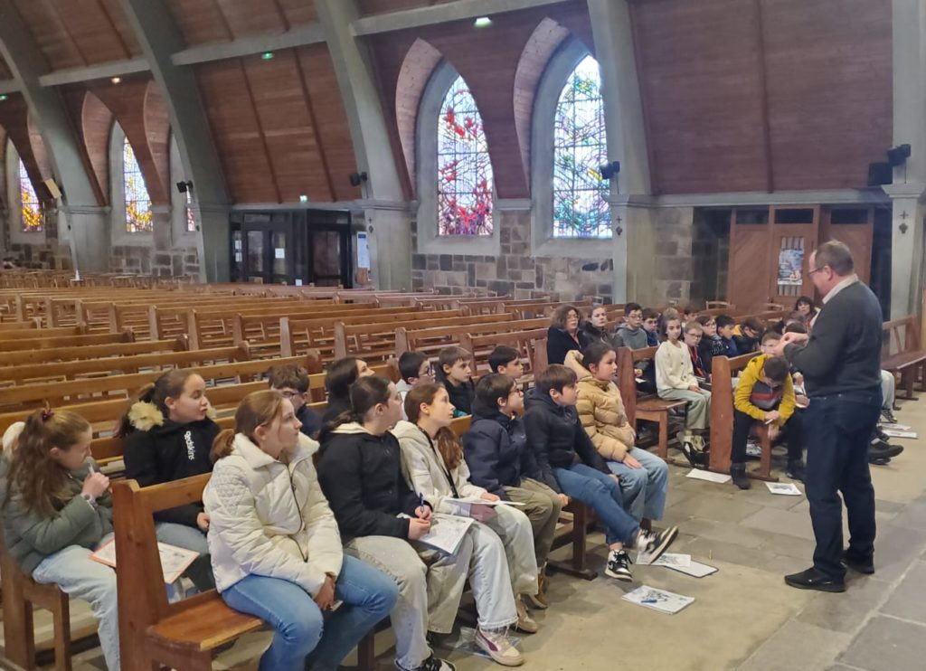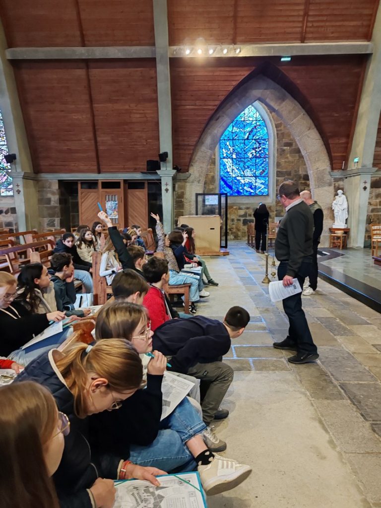 Une visite de l’église de Guipavas a permis à des intervenants bénévoles de la Paroisse de présenter aux 6e les éléments importants d’une église et de répondre à leurs nombreuses questions.
