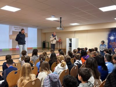Ces lundi et mardi 6 et 7 octobre, son fondateur, Sylvain Dhugues est venu à la rencontre de tous les collégiens, pour présenter son parcours et son action. Depuis 2023, l’association KIMI sensibilise les jeunes aux problématiques de harcèlement et de sédentarité, et leur transmet des outils pour se construire, prendre confiance mais également aider les autres. De quoi motiver les élèves à chercher de nombreux parrainages !